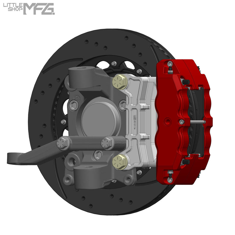 Utilizes machined billet LSMFG hubs, hats, and radial brackets, equivalent to Wilwood part numbers 140-10776, 140-10776-D, 140-10776-R, 140-10776-DR