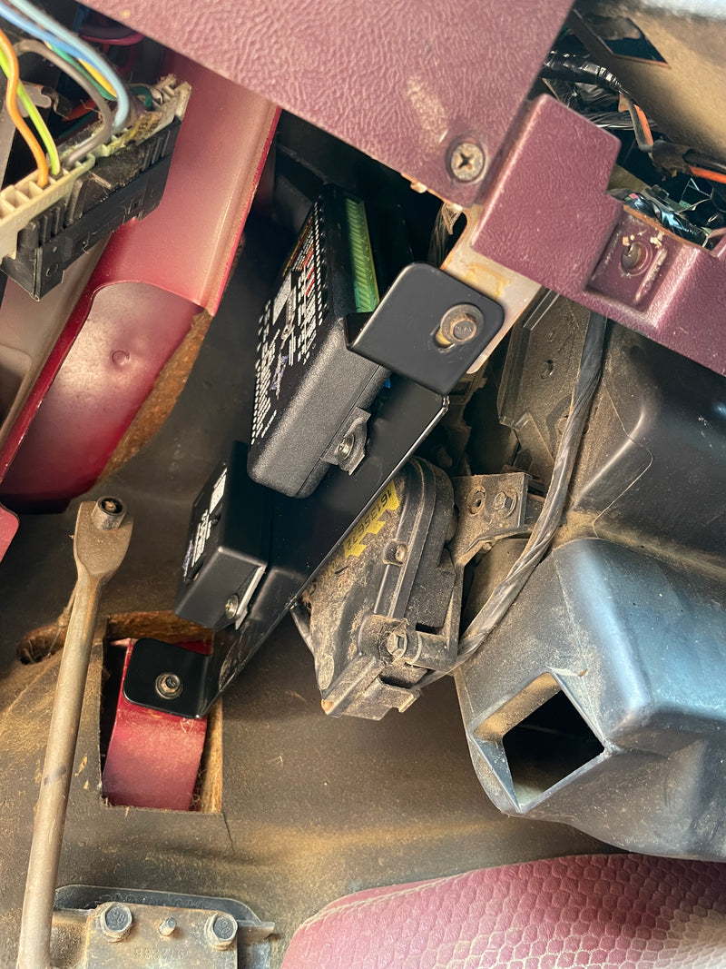 This laser-cut steel mounting bracket is designed to make mounting a Dakota Digital instrument system control box simple and straightforward in your 88-94 GM pickup / 92-94 SUV. Whats more, the bracket even has a place to mount a BIM-01-2 or other add-on module!