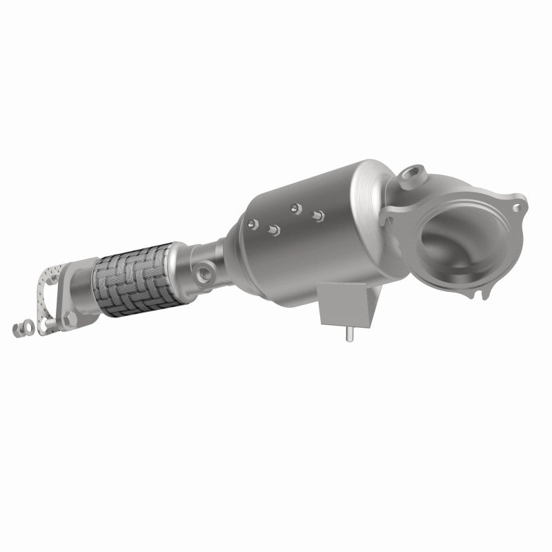Keep the check engine light off with MagnaFlow OEM Grade Federal/EPA Compliant Direct-Fit Catalytic Converter 21-711. With features including free-flowing mandrel-bent tubing and highly corrosion resistant stainless steel construction, easily install this spun body converter yourself using the proper tools, no cutting or welding required. MagnaFlow's state-of-the-art metrology department uses the latest 3D scanning systems during research and development, so you can be confident that your new part will fit and function like the original equipment. By replicating the OE spun body design, the single laser fusion weld greatly reduces the possibility of a leak, and our compact, low-mass design also allows for greater thermal efficiency. This direct-fit catalytic converter is designed specifically for the 2014-2019 Ford Fiesta and interchanges with OE part D2BZ-5E212-A. The included gaskets & hardware reduce the possibility of a leaking seal while avoiding the need to reuse corroded factory parts for installation. This replacement part is designed to meet or exceed Federal emissions requirements set forth by the EPA, complying with legal standards for OBDII Federally registered vehicles with California or Federal/EPA Emission systems.