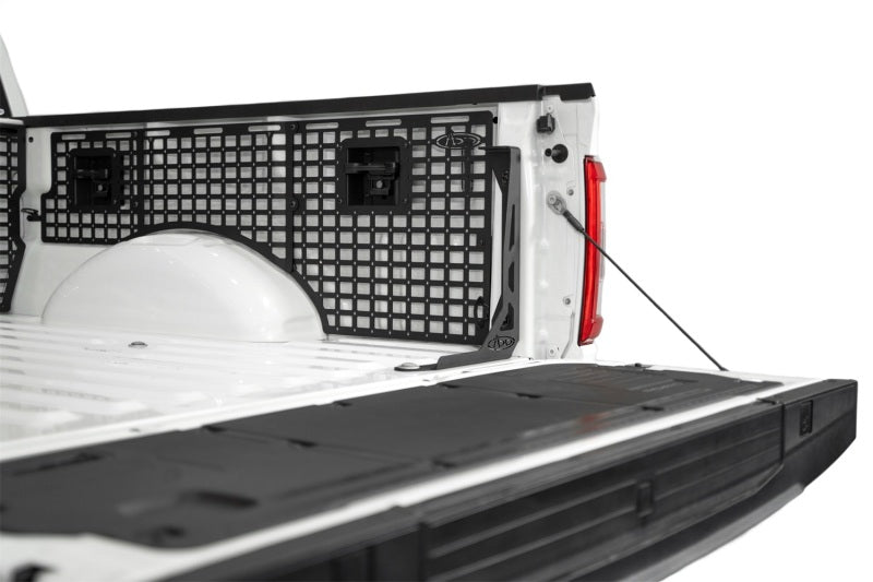 Our Bed Side Molle Panels optimize the cargo storage capabilities of your truck bed. Engineered for off-road durability and keeping your gear secure, these storage panels are compatible with various attachment systems. You can secure your gear to these panels with molle mounts, straps, bolts, or tie-down straps. Choose from several configurations for the driver side, passenger side, or both sides to maximize your vertical storage - and leave the bed floor clear for larger cargo. Our panels are unrivaled in their fitment, as the very closely follow the contours of the truck bed. Constructed from American steel and finished in a durable 2-stage hammer black powder coat, these molle panels add secure storage for essentials like shovels, hi-lift jacks, fluid tanks, recovery gear, and more. The panels mount to the bed at several points, ensuring rigidity on rough terrain. Even so, they are easily removable when needed. As always, these are fully bolt-on and Made in America. This modular system allows for you to run 4 configurations on driver side, passenger side, or both: Front Bed Panel Only / Rear Bed Panel Only / Front & Rear Bed Panels Only / Front, Center, & Rear Bed Panels for Full Bed Length Coverage * Please Note: The front panels can be installed to either the driver or passenger sides. All other panels are unique to each side of the truck, and will only install to its dedicated side. ** Please Note: Center panel cannot be installed on its own. It requires BOTH the front and rear panels for installation. ** Fitment Note: These are compatible with the 5.5' Short Bed Only.