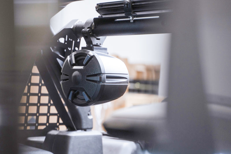 Our Rear Speaker & Light Bar mount features a 2-inch diameter tube that is perfect for mounting speaker cans with roll bar clamps. The bar also features a mounting point for up to a 20-inch single row light bar for rear facing lighting. There are additional mounting holes that can be used to mount other accessories such as a Hi-Lift or additional speakers. We provided provisions for clean wire management. Installation is simple, and consists of only 4 bolts to get it mounted. Catalog